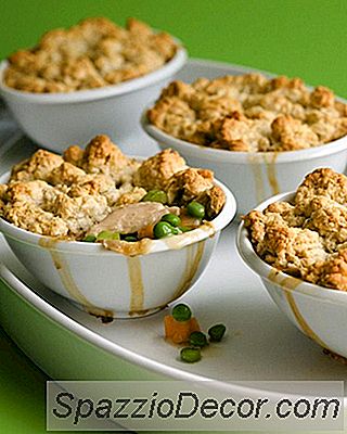Paso 6: Vierta la mezcla de pavo en los tazones o cazuela preparados. Usando una cuchara grande, deje caer la masa en montículos 8 sobre la mezcla de pavo. Si lo desea, cepille los montículos con suero de leche adicional. Hornee por 30 a 35 minutos o hasta que las tapas de galleta estén doradas y un palillo de madera insertado cerca del centro de uno salga limpio.