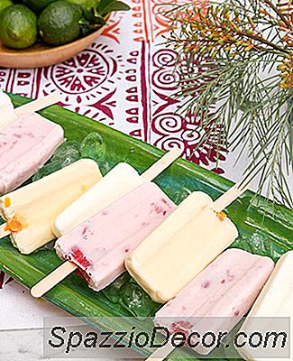 Un postre saludable de paletas de frutas y leche se mantiene frío en hielo, un gran truco para evitar que las golosinas congeladas se derritan cuando se sirve al sol.
