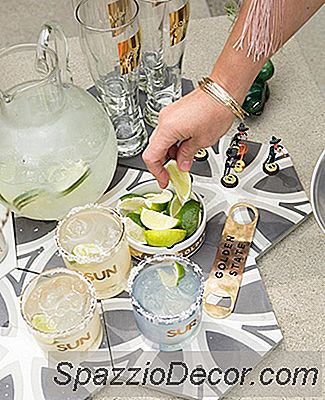 Ninguna fiesta del Cinco de Mayo estaría completa sin una refrescante margarita, por lo que la anfitriona preparó un lote en su estación de bebidas y las sirvió en sus vasos Golden State Rocks con borde de sal de roca. Estamos obsesionados con su ambiente elegante que dice exactamente lo que estamos pensando en estos días: ¡sol y surf!