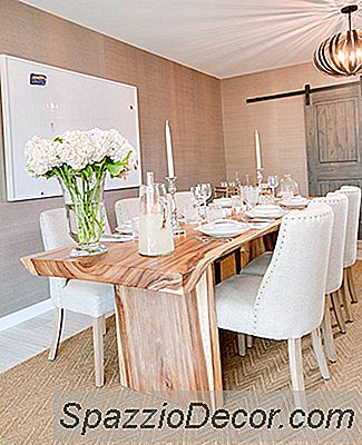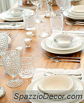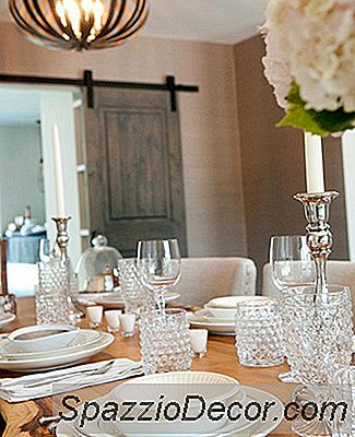 La combinación de madera en bruto, vidrio tallado y platos combinados crea un comedor romántico y moderno al mismo tiempo.