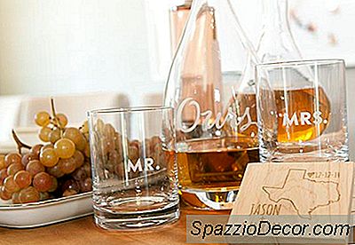 Ella continúa: "También tenemos este gran carrito de bar que muestra algunas piezas geniales que representan quiénes somos como pareja. Este decantador de cristal grabado fue un regalo de nuestra boda, y Jason lo llenó con 1942 Tequila (¡su favorito absoluto!). "